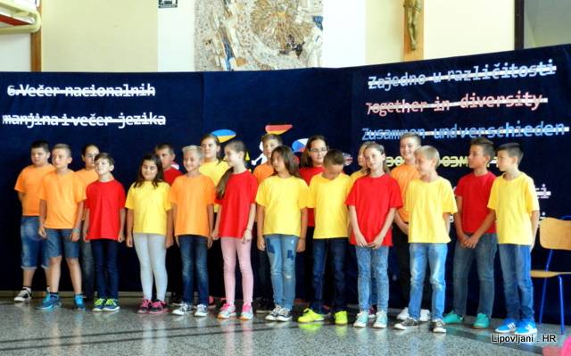 Dana 8. lipnja 2017.g. u 18 sati, pod geslom ″Zajedno u različitosti″ svečanim programom obilježena je 6. večer nacionalnih manjina i večer jezika u Osnovnoj školi Josipa Kozarca u Lipovljanima.