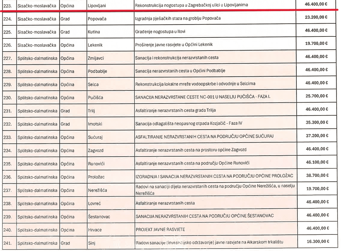 DODIJELJENA ODLUKA O FINANCIRANJU REKONSTRUKCIJE NOGOSTUPA U ZAGREBAČKOJ ULICI U IZNOSU 46.600,00 EURA