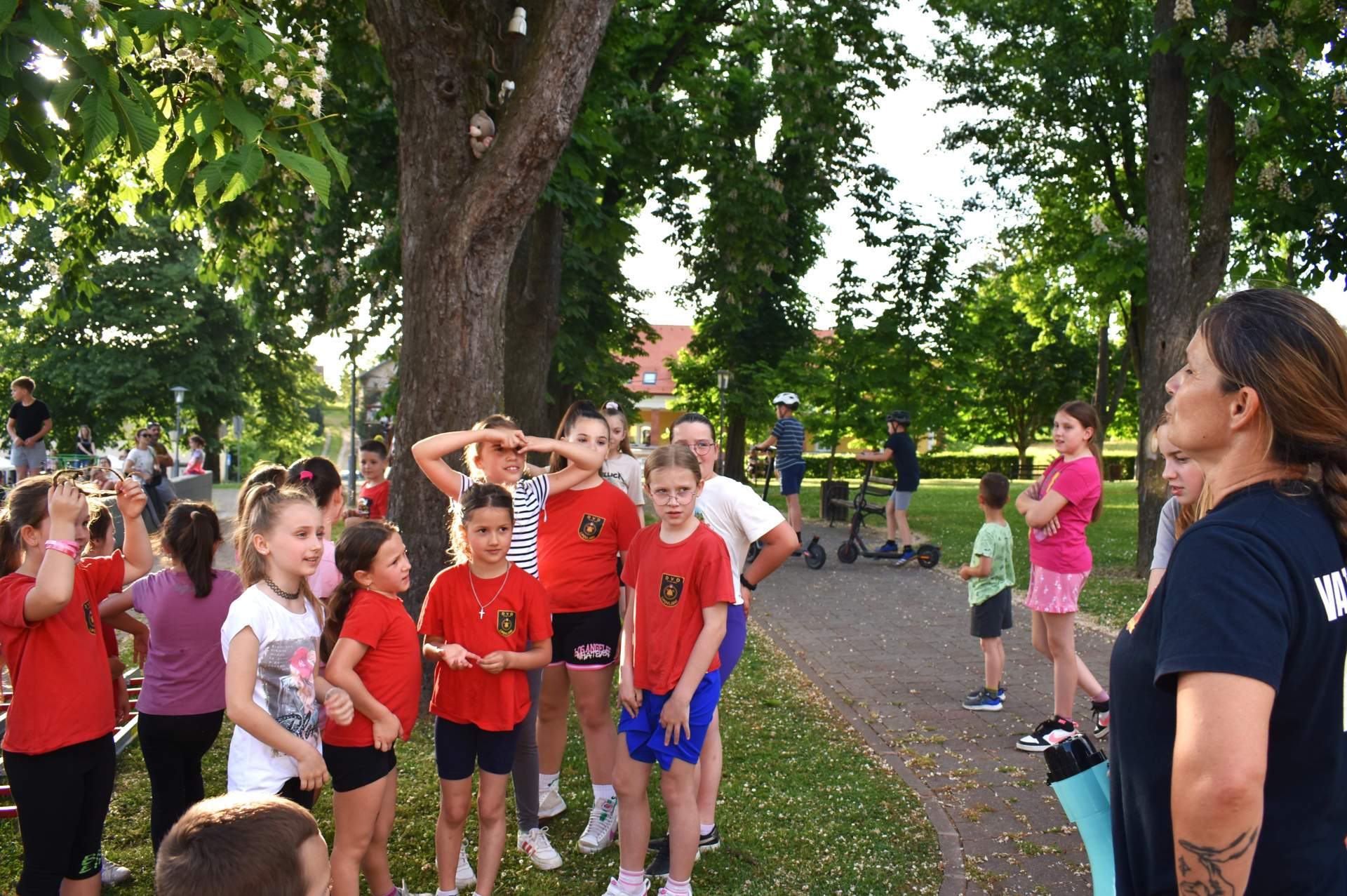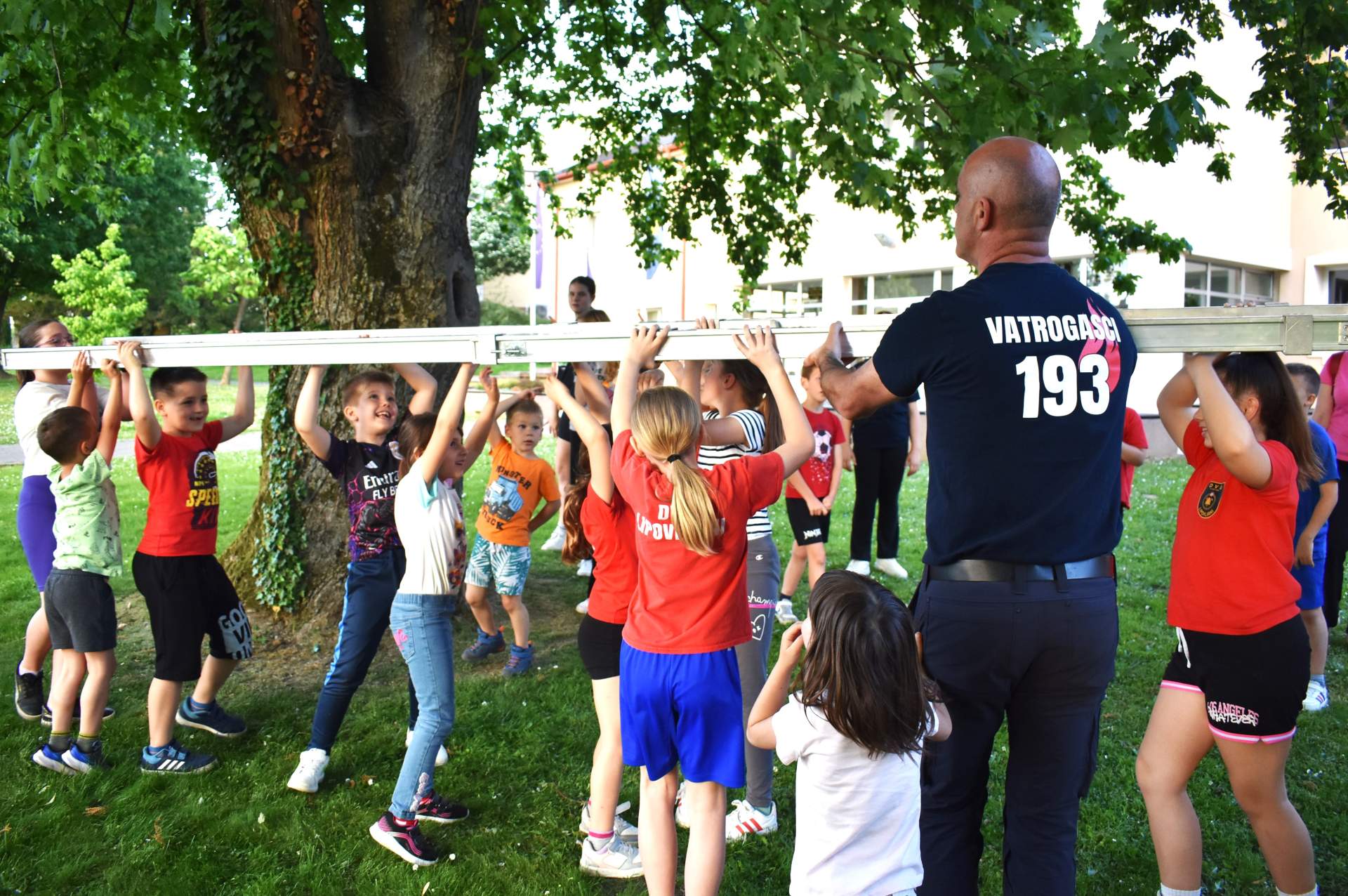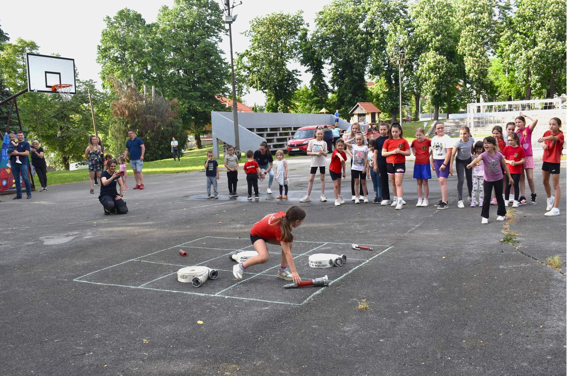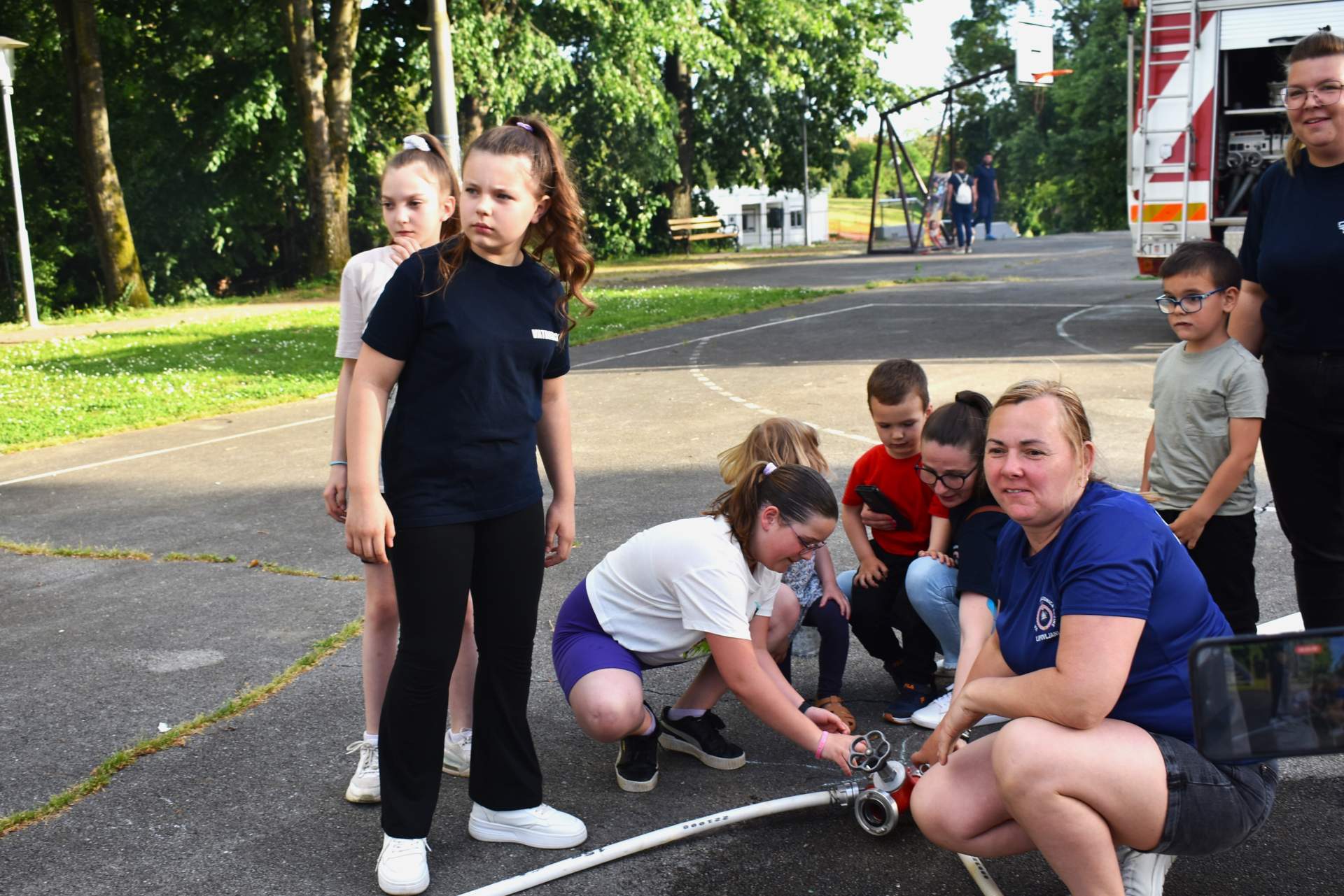 Tako je 70-tak najmlađih, uz svoje roditelje, zaigralo zanimljive i vesele igre. Bilo je tu slaganja križić-kružić kocke s vatrogasnom opremom, skupljanja bodova na ubacivanjima loptica, gađanje meta kroz mokru vatrogasnu vježbu, fotografiranje s vatrogascem, prenošenje loptica i traženje, odnosno spašavanje mačke u parku s drveća. Vesele igre trajale su više od dva sata, a onda su svi prisutni počašćeni grickalicama i sokom.