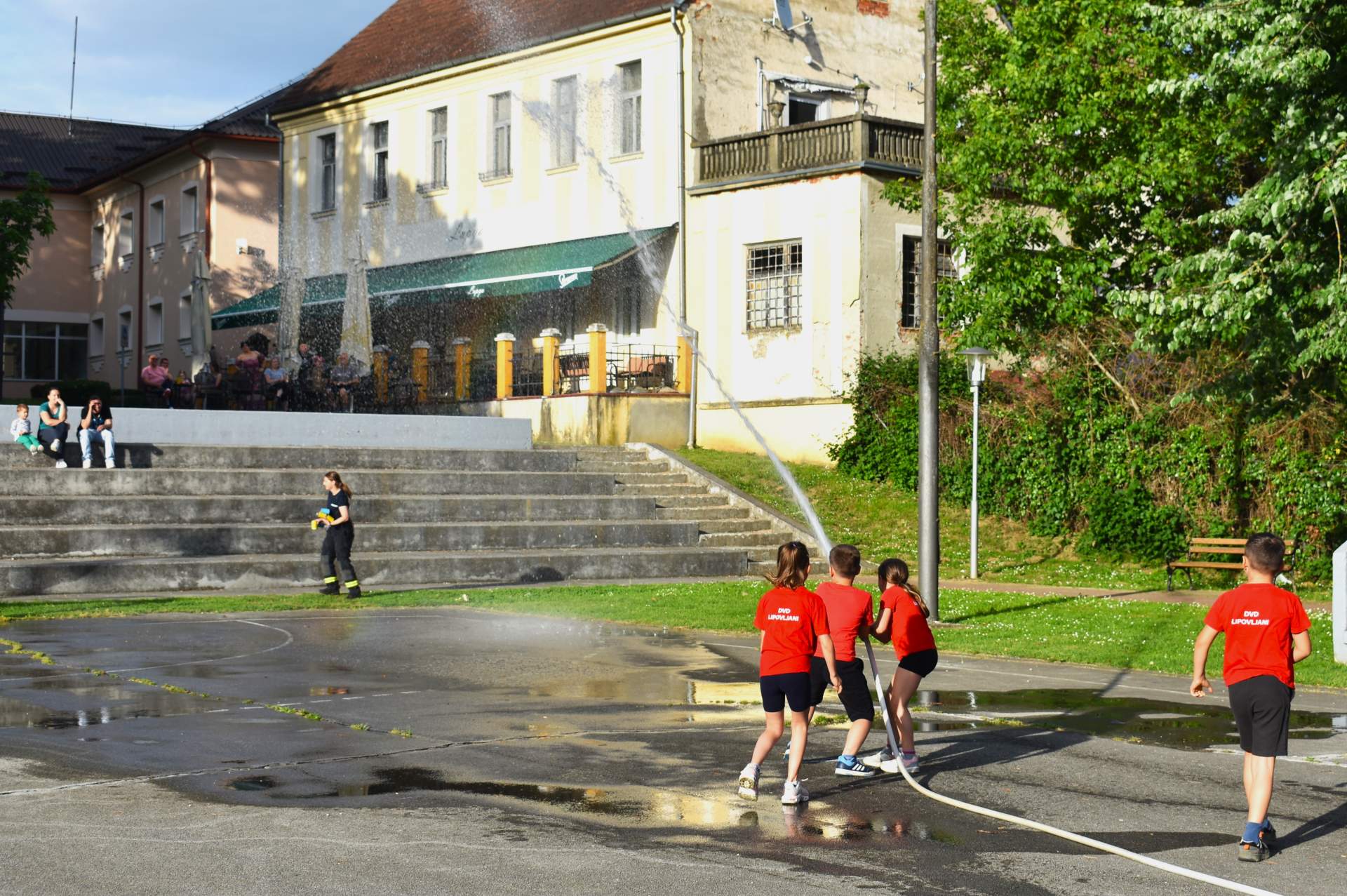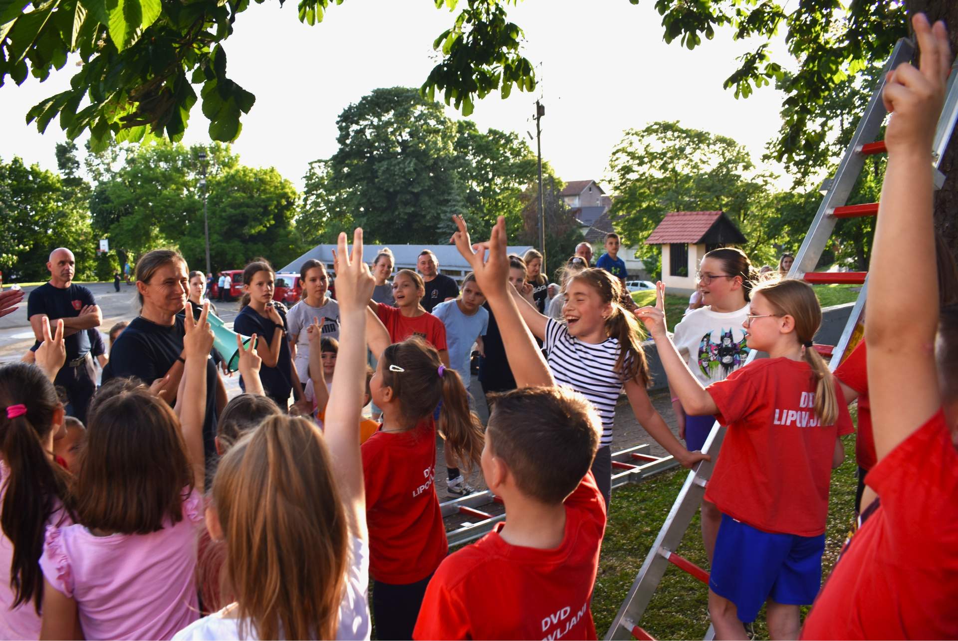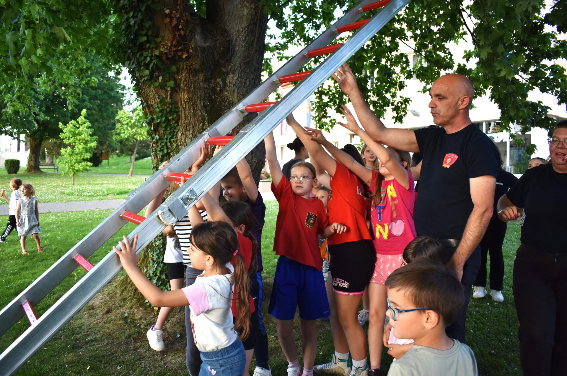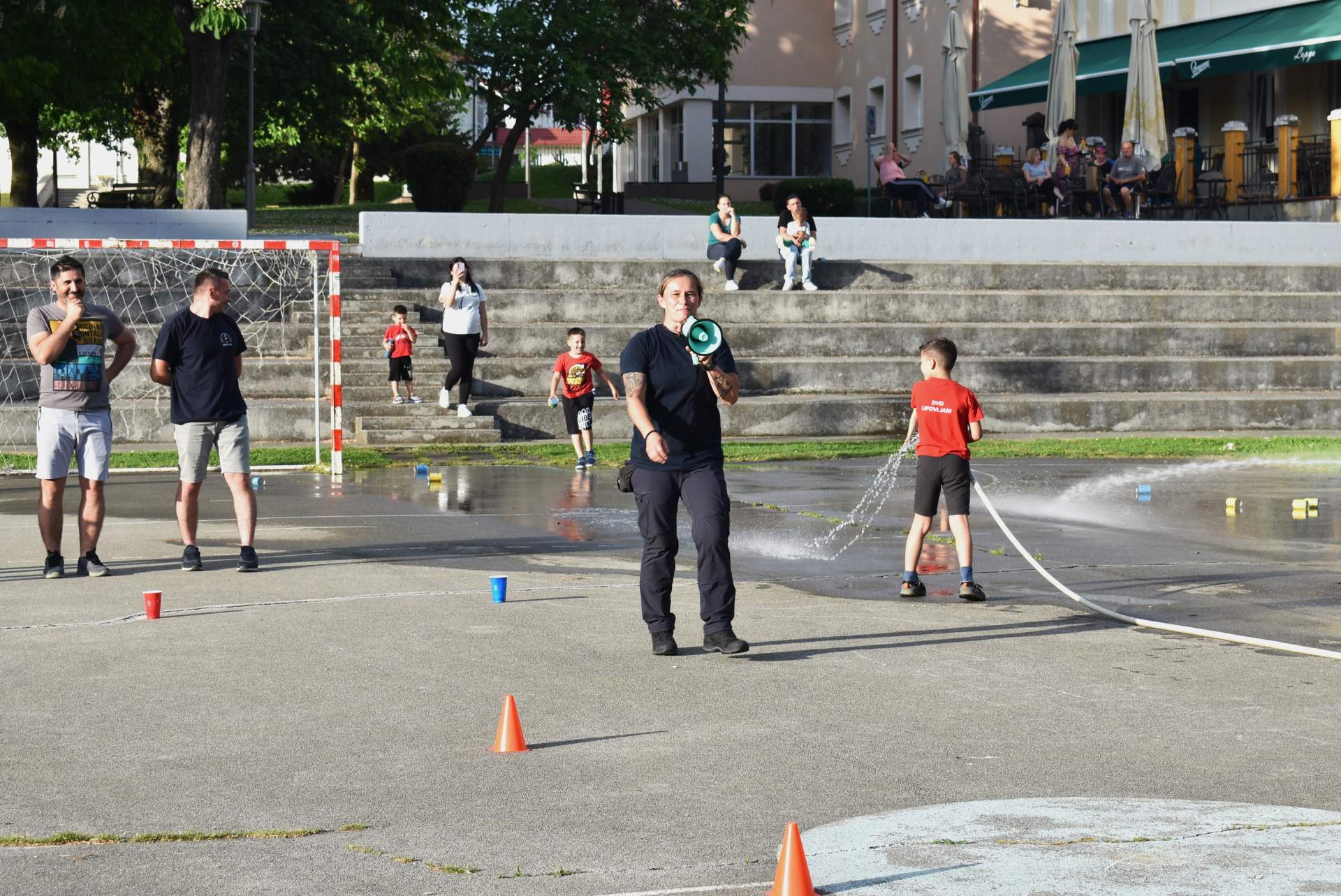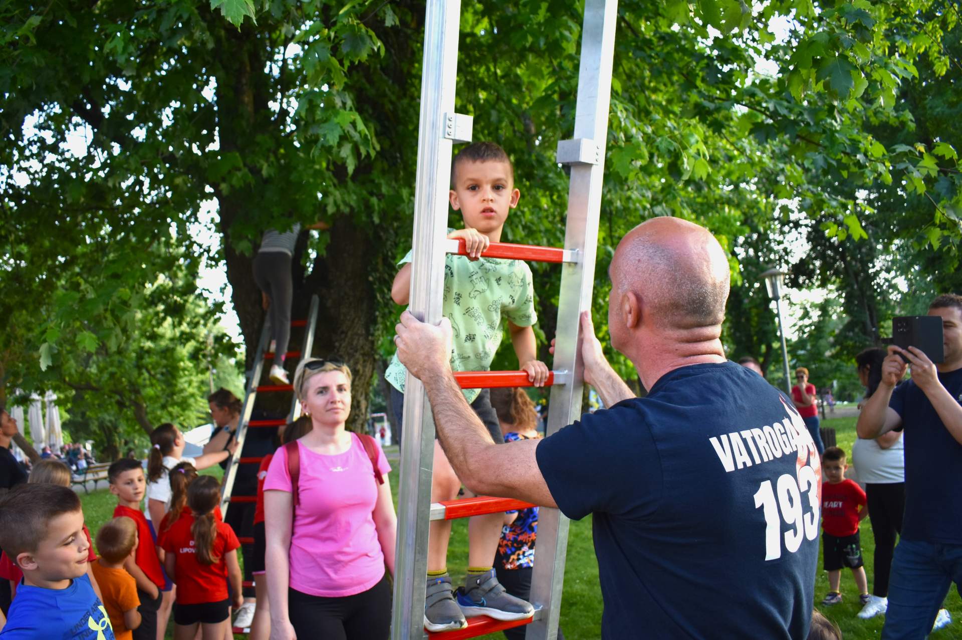 Tako je 70-tak najmlađih, uz svoje roditelje, zaigralo zanimljive i vesele igre. Bilo je tu slaganja križić-kružić kocke s vatrogasnom opremom, skupljanja bodova na ubacivanjima loptica, gađanje meta kroz mokru vatrogasnu vježbu, fotografiranje s vatrogascem, prenošenje loptica i traženje, odnosno spašavanje mačke u parku s drveća. Vesele igre trajale su više od dva sata, a onda su svi prisutni počašćeni grickalicama i sokom.