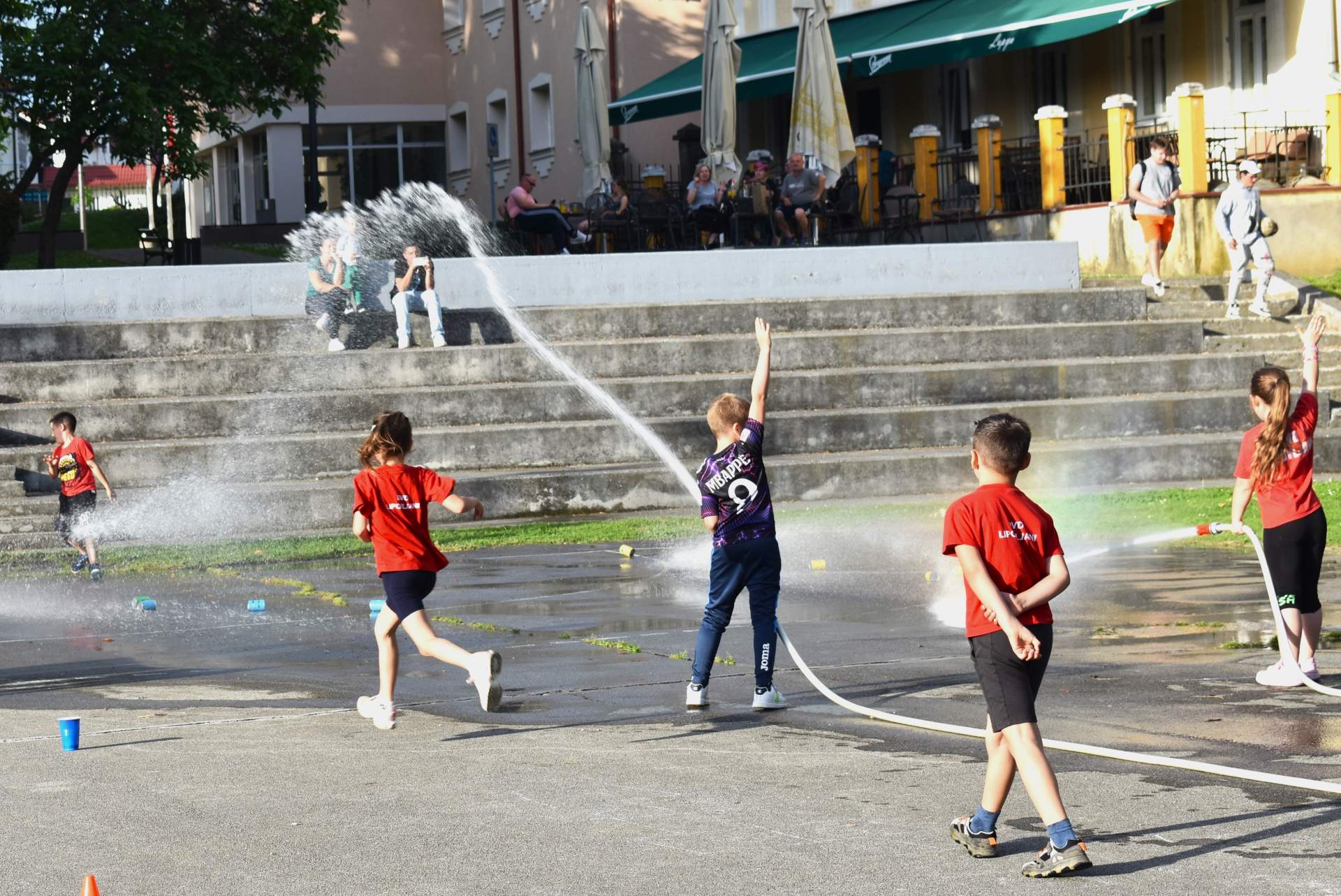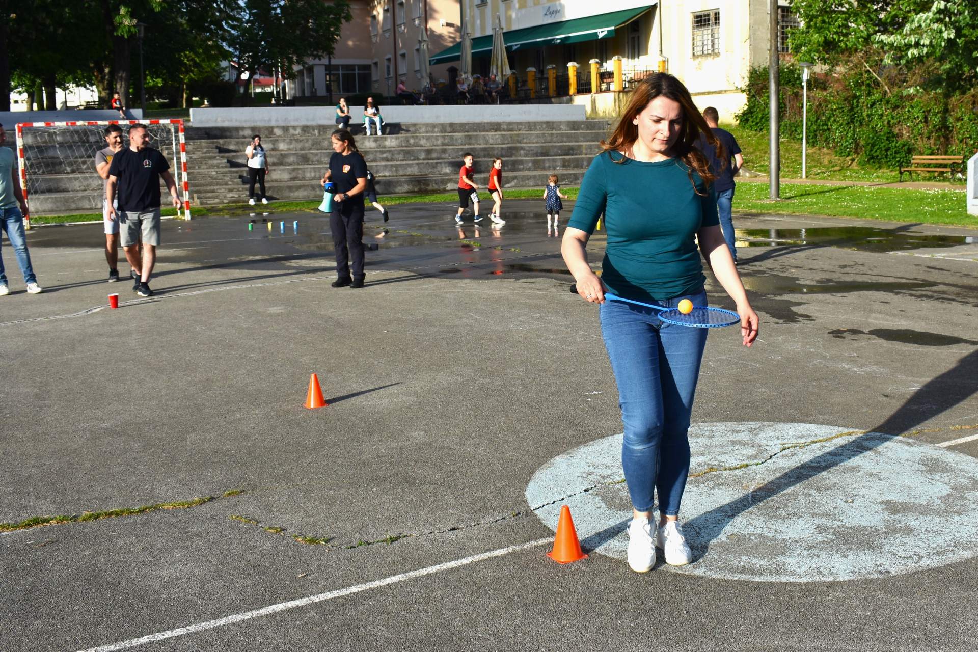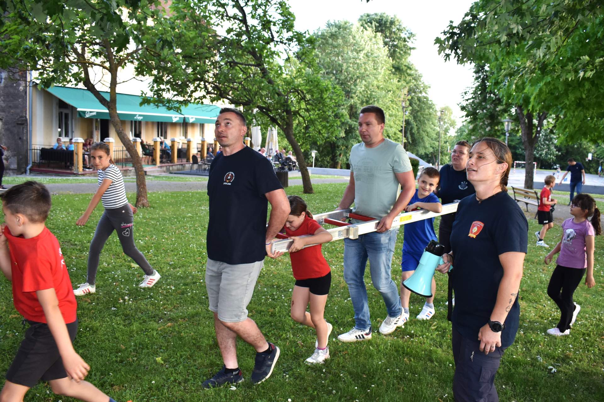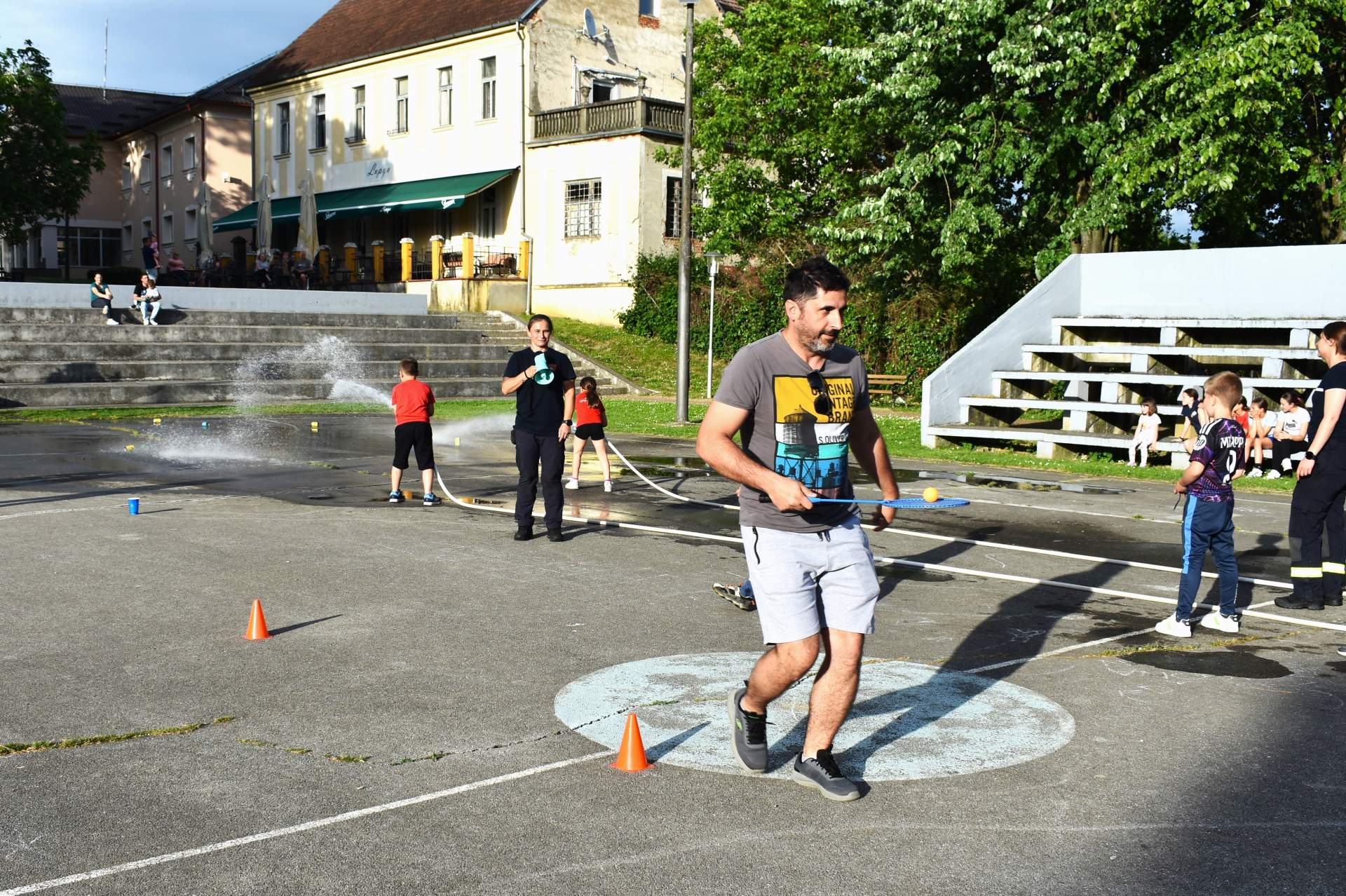 Tako je 70-tak najmlađih, uz svoje roditelje, zaigralo zanimljive i vesele igre. Bilo je tu slaganja križić-kružić kocke s vatrogasnom opremom, skupljanja bodova na ubacivanjima loptica, gađanje meta kroz mokru vatrogasnu vježbu, fotografiranje s vatrogascem, prenošenje loptica i traženje, odnosno spašavanje mačke u parku s drveća. Vesele igre trajale su više od dva sata, a onda su svi prisutni počašćeni grickalicama i sokom.