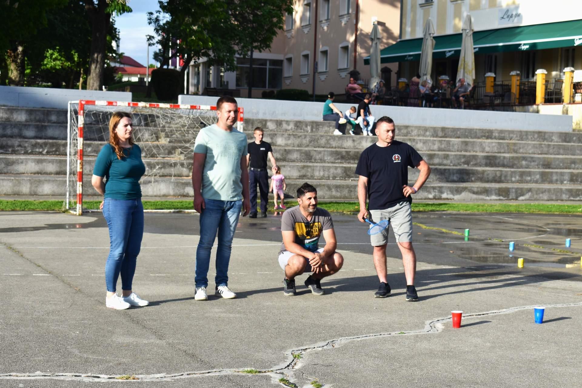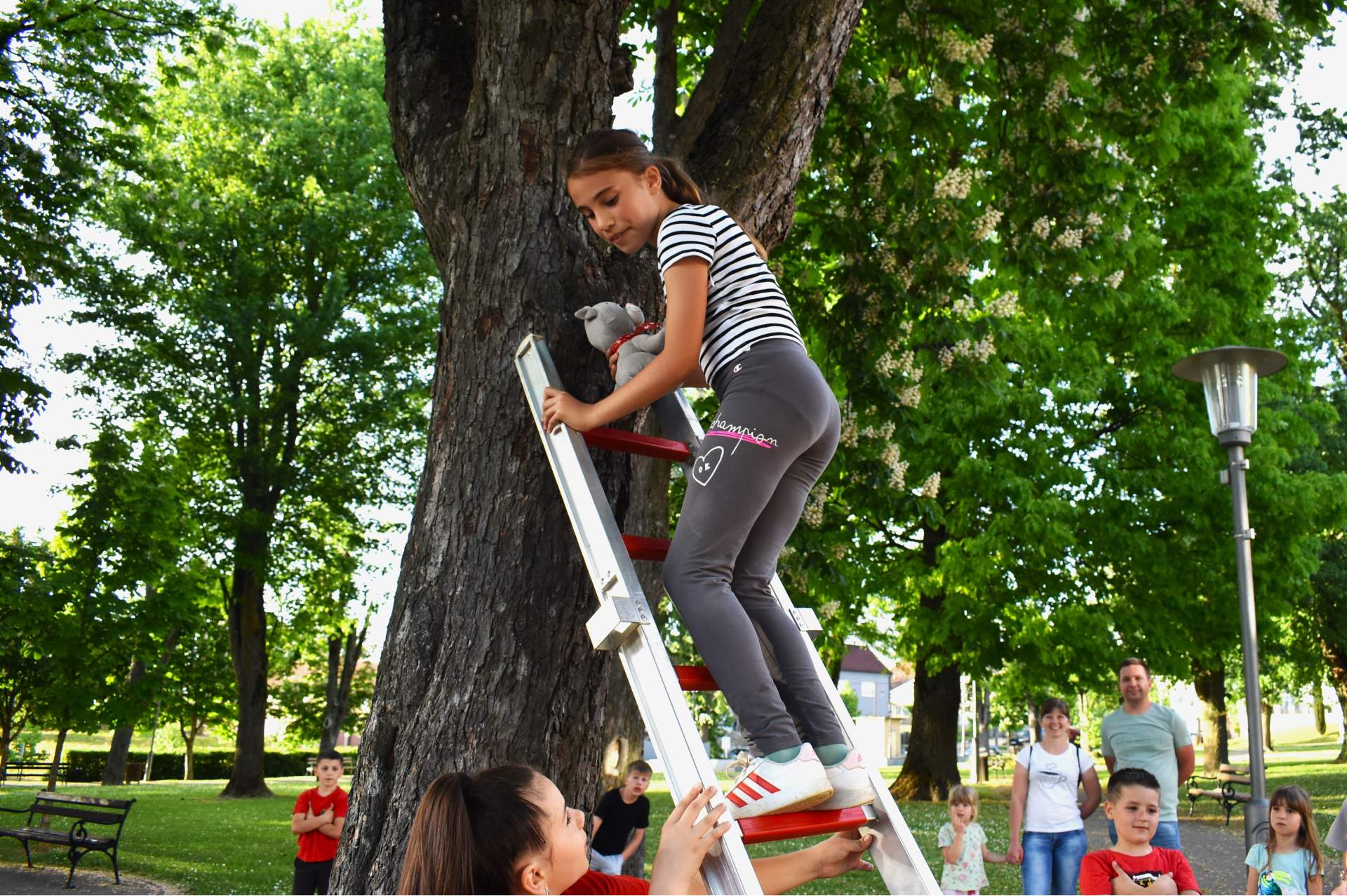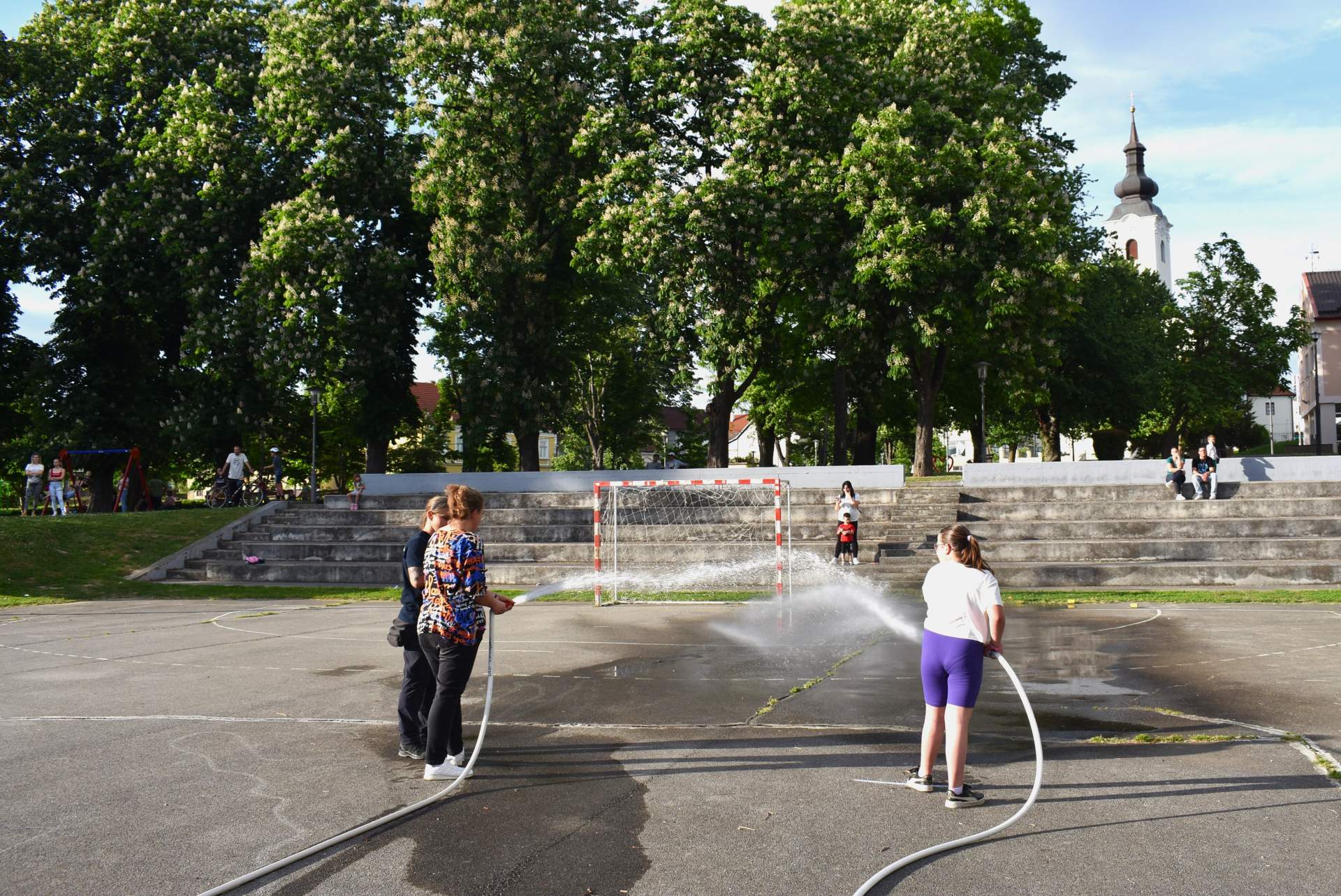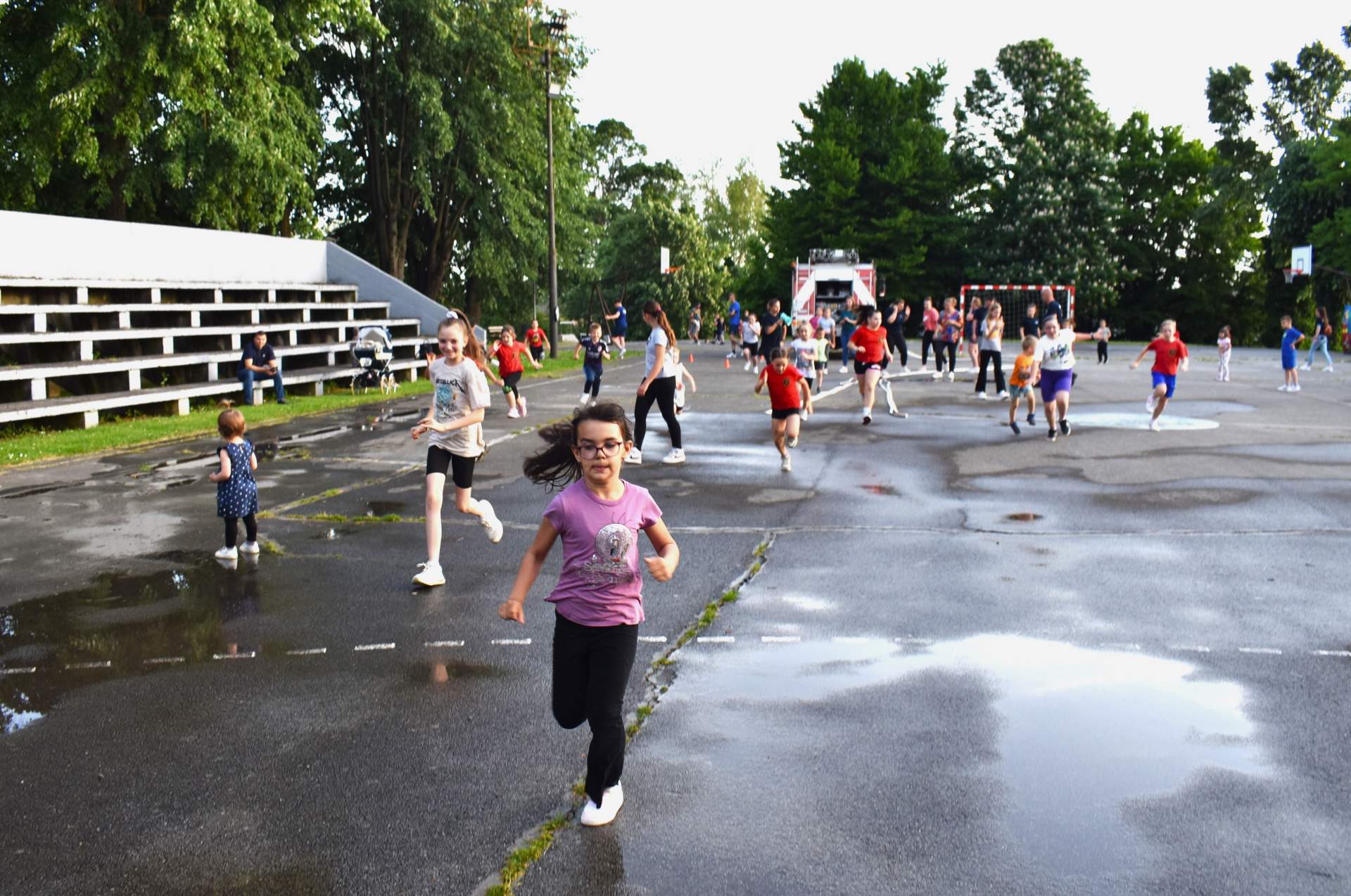 Tako je 70-tak najmlađih, uz svoje roditelje, zaigralo zanimljive i vesele igre. Bilo je tu slaganja križić-kružić kocke s vatrogasnom opremom, skupljanja bodova na ubacivanjima loptica, gađanje meta kroz mokru vatrogasnu vježbu, fotografiranje s vatrogascem, prenošenje loptica i traženje, odnosno spašavanje mačke u parku s drveća. Vesele igre trajale su više od dva sata, a onda su svi prisutni počašćeni grickalicama i sokom.