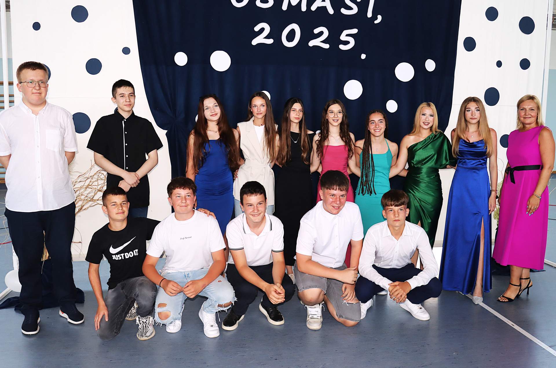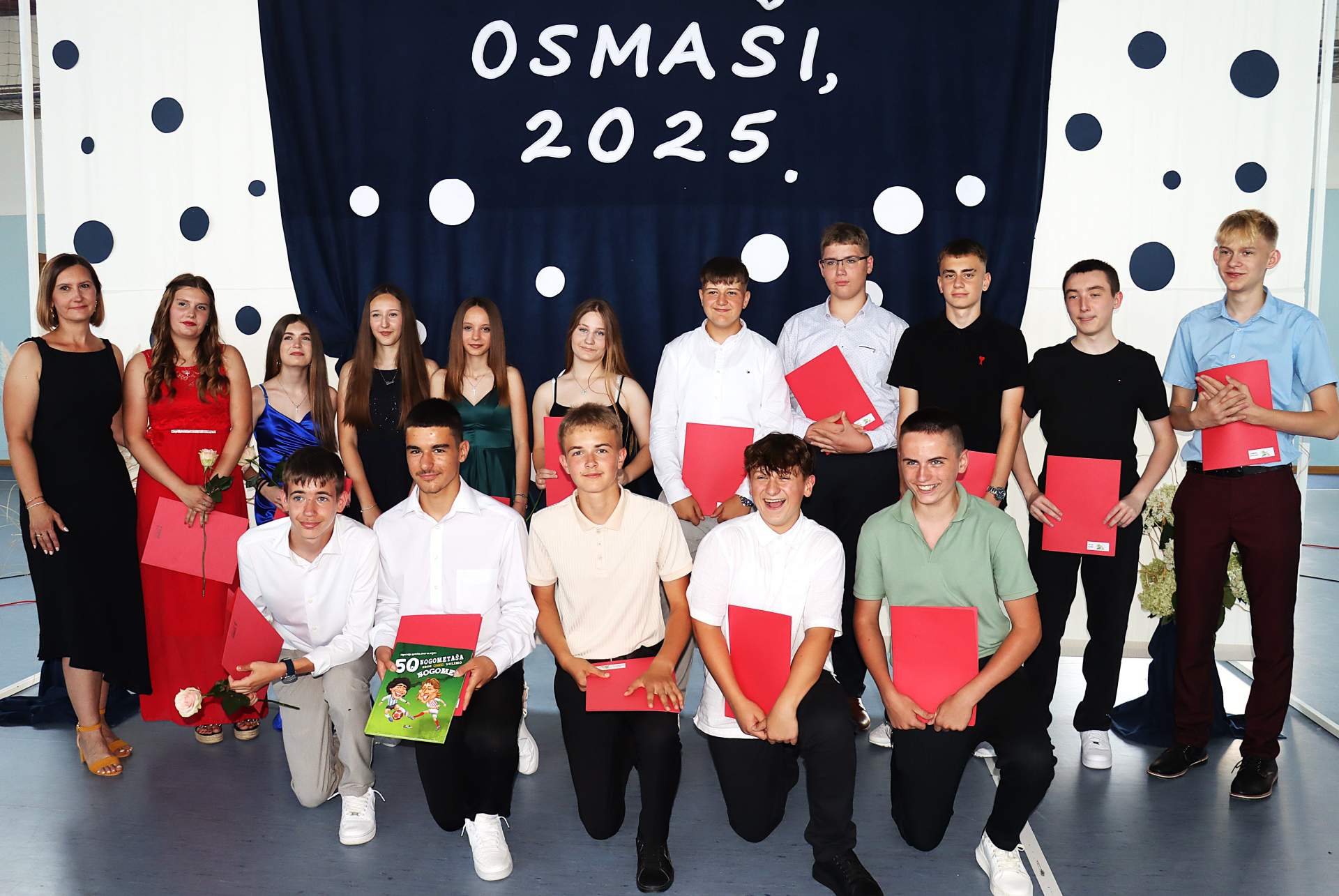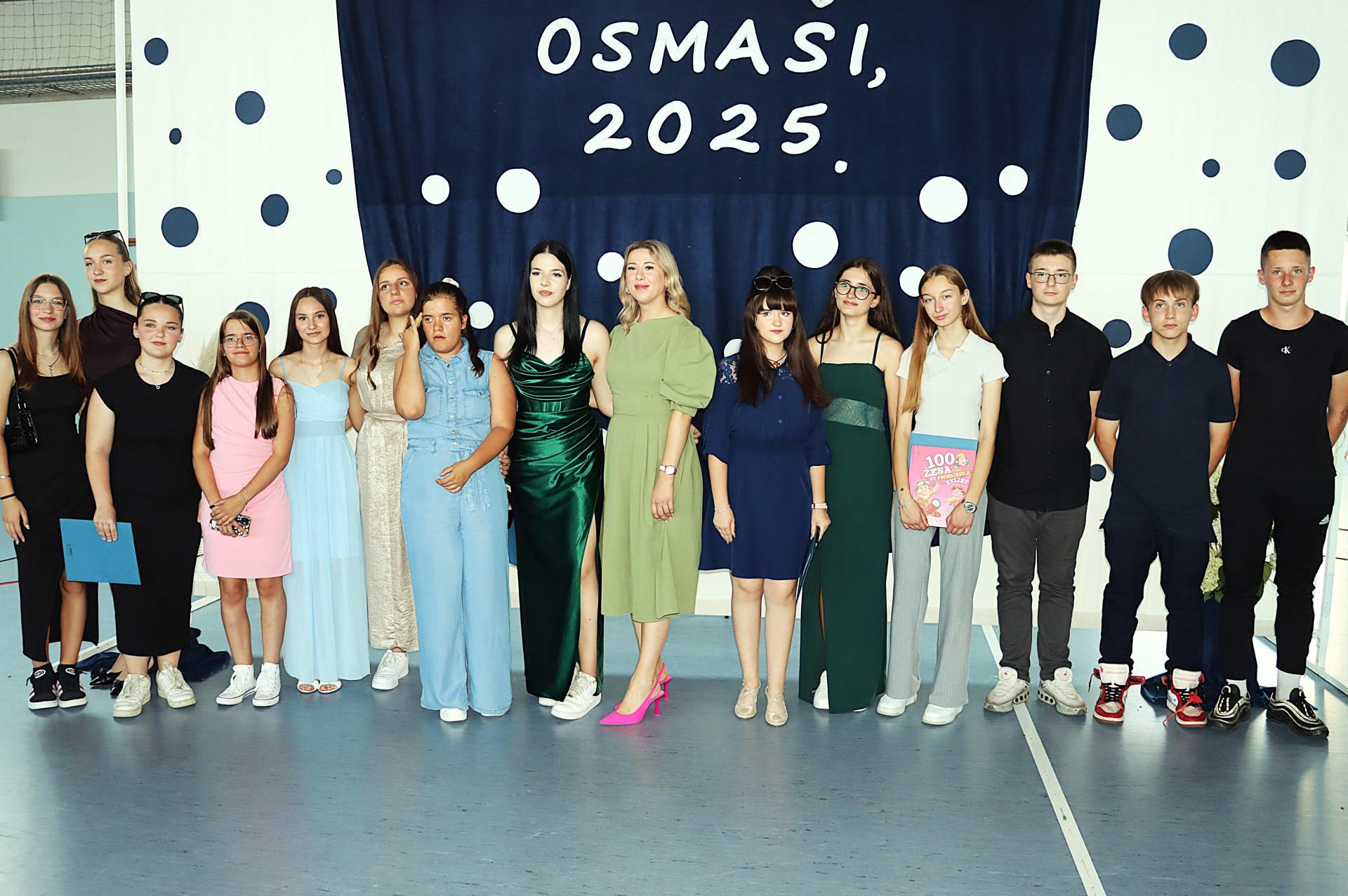 Pred učitelje, roditelje i prijatelje još jednom su izašli učenici osmih razreda. U 8.a razredu znanje su stjecali: Monika Baković, Ante Cota, Mihael Crnojević, Josipa Cumbo, Filip Herceg, Ana Knobloch, Luka Hlupić, Josipa Kvaternik Batrenjak, Mijo Pavlenić, Lana Ribarić, Gabriel Pavlović, Petar Režak, Luka Šalić, Karlo Šunjal i David Komljenović.